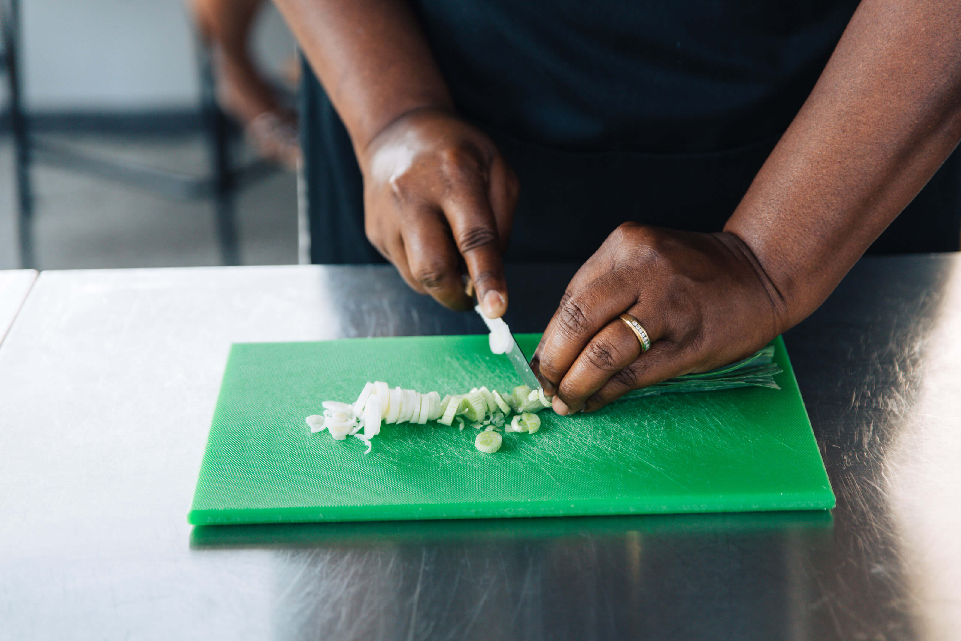 Chef reveals these and other great hacks while we all sleeve up and get to work, each of us under his impressively attentive gaze.
