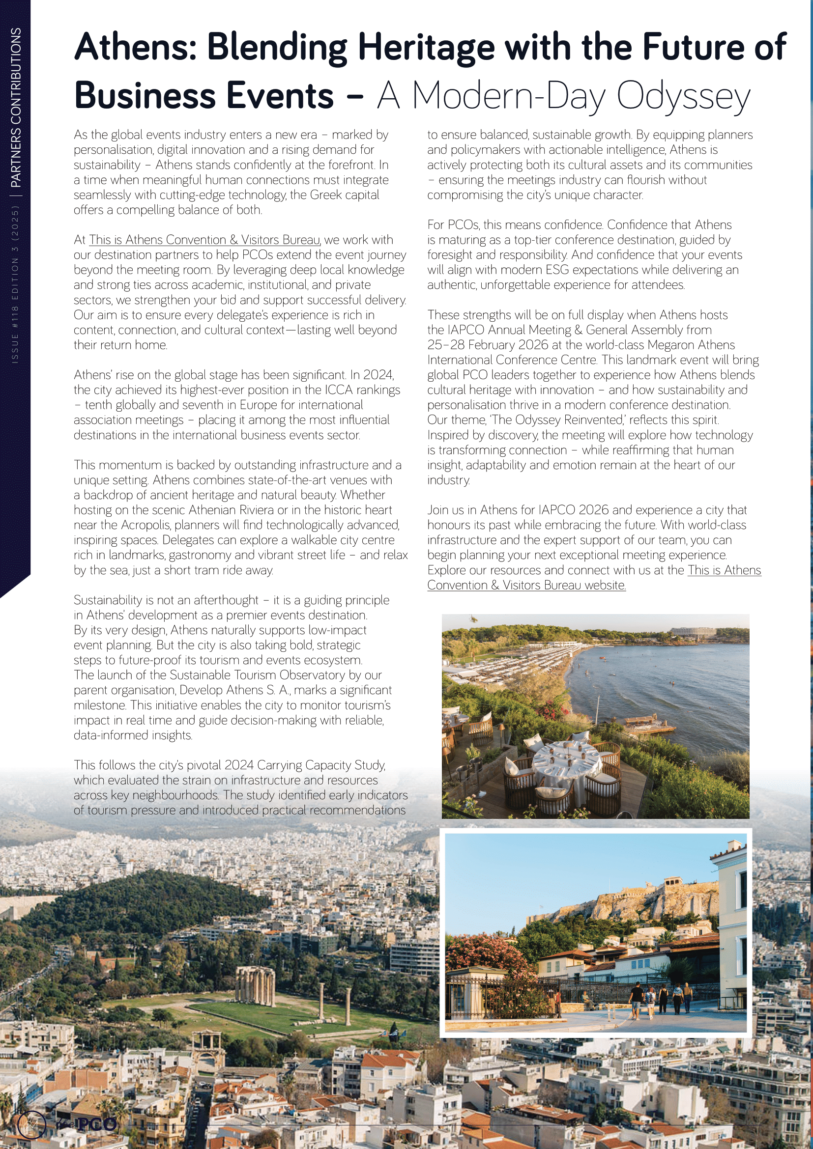 This is Athens-CVB is excited to share that Athens is the focus of a new feature in the latest edition of IAPCO's prestigious PCO magazine, a key publication for leading Professional Congress Organisers globally.