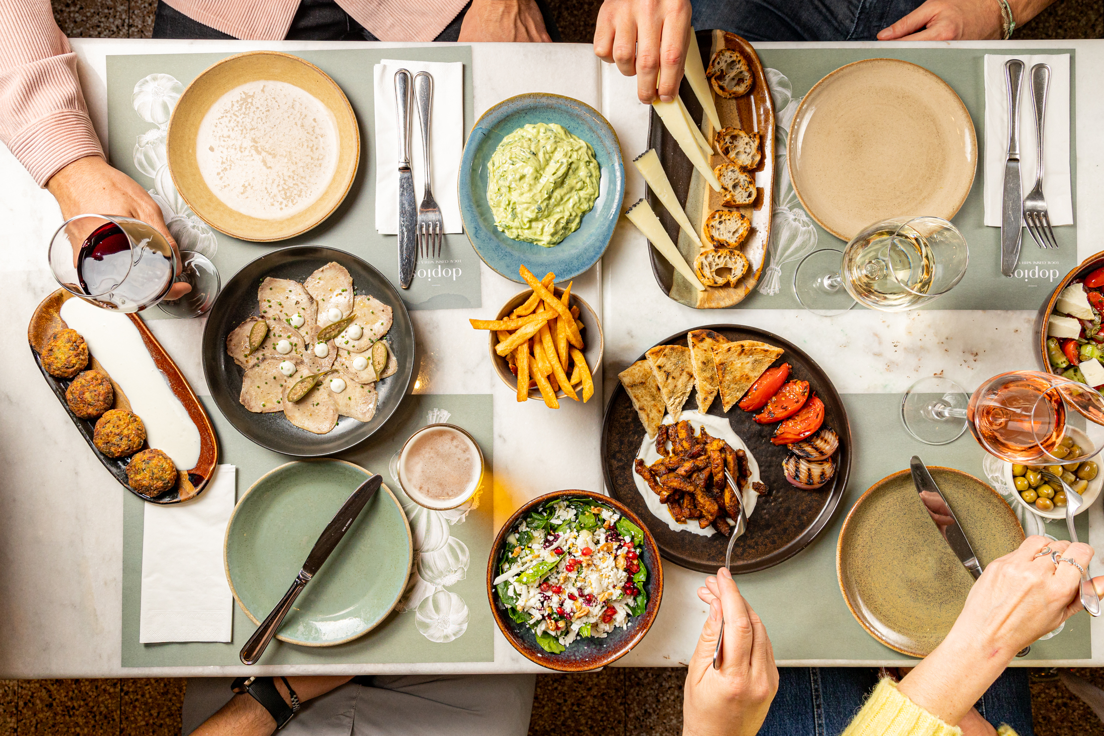 Located right next to one of Athens’ lively pedestrian streets and a historic church, Dopios offers a vibrant atmosphere where you can truly feel the city’s pulse — whether you join us for lunch under the sun or dinner in the heart of the capital.
