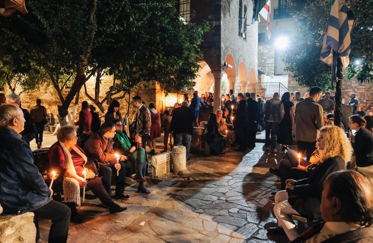 On Good Friday, head to Agios Georgios atop Lycabettus Hill for the candle-lit epitafios procession. As the candlelit vigil snakes down the hill, you can also spot the processions taking place around each of the city’s parishes.