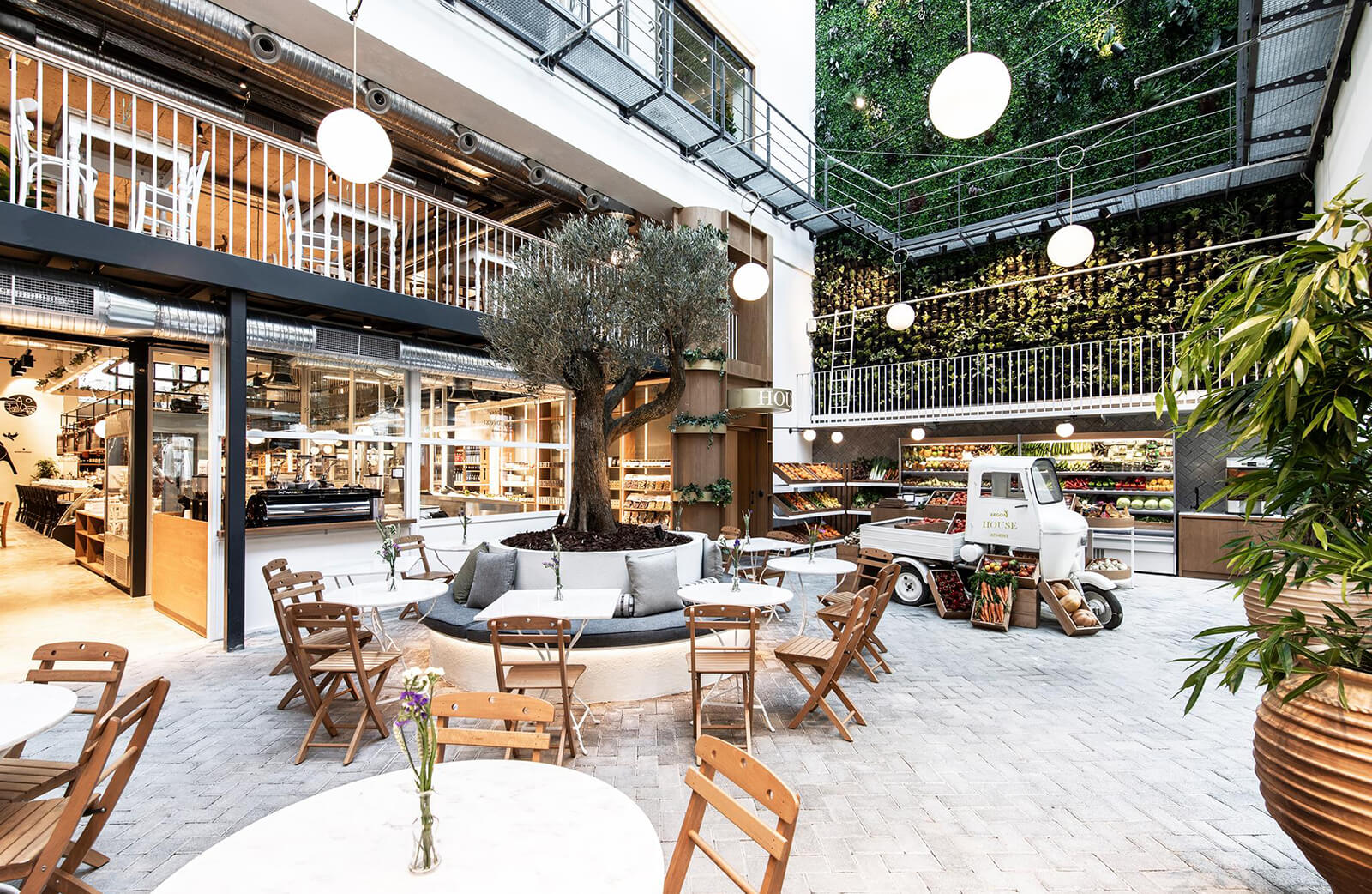 This self-styled ‘foodie hotel’, restaurant and concept store opened with a bang in February 2019. The huge, light- and plant-filled space combines shopping and eating in a stylish blend that borrows heavily from Whole Foods in the USA. A 200-year-old olive tree guards the entrance and a giant mural painted by local street artist Ino covers one wall. There’s a vertical garden made of herbs and salads to be picked and plated.