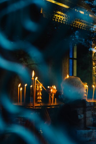 As midnight approaches, all the lights in the church go out. The priest lights a candle from the eternal flame of the holy fire. Then announces “Christos Anesti” (Christ is risen!). As the church bells toll, the priest passes on the light from his candle. Each person passes on the light to others, with the same words. The person receiving the flame responds: Alithos Anesti or “Verily He is Risen”. Soon, the light from a single candle is passed on to the entire congregation.